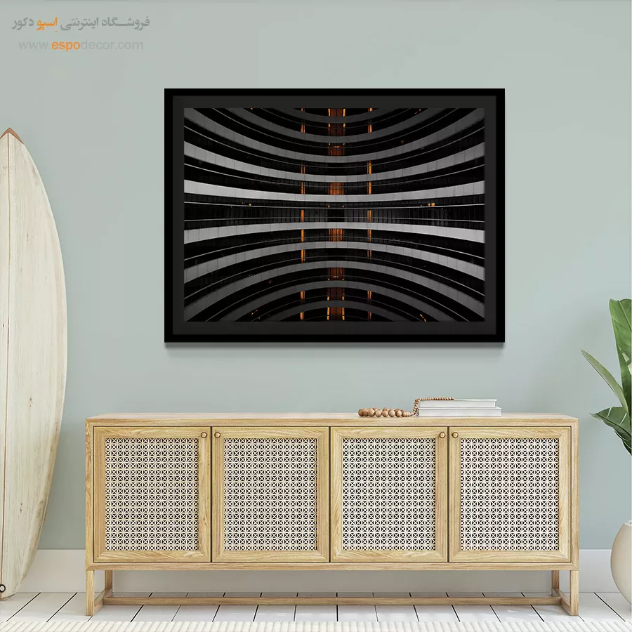 • ادامه طرح اصلی تا کناره‌های بوم: ما در اسپو دکور از این روش استفاده می‌کنیم تا تابلو حالت منسجم و یکپارچه داشته باشد و از نمای کناری نیز جذاب دیده شود.
