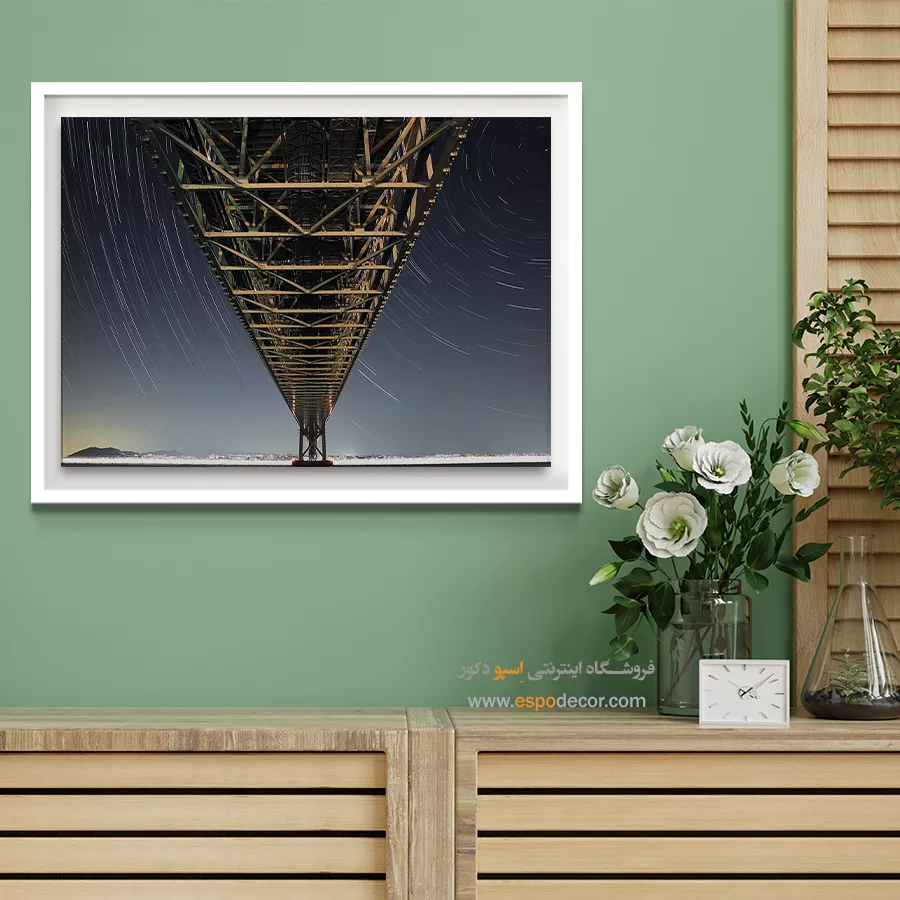 • ادامه طرح اصلی تا کناره‌های بوم: ما در اسپو دکور از این روش استفاده می‌کنیم تا تابلو حالت منسجم و یکپارچه داشته باشد و از نمای کناری نیز جذاب دیده شود.