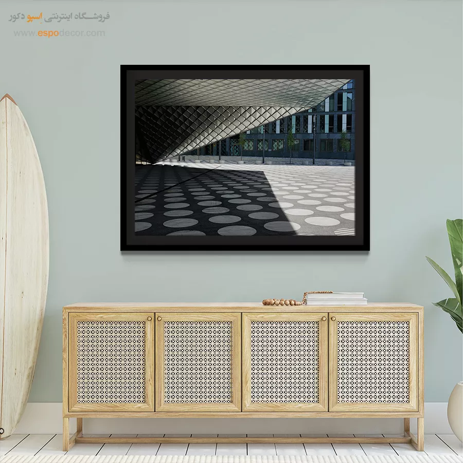 • ادامه طرح اصلی تا کناره‌های بوم: ما در اسپو دکور از این روش استفاده می‌کنیم تا تابلو حالت منسجم و یکپارچه داشته باشد و از نمای کناری نیز جذاب دیده شود.