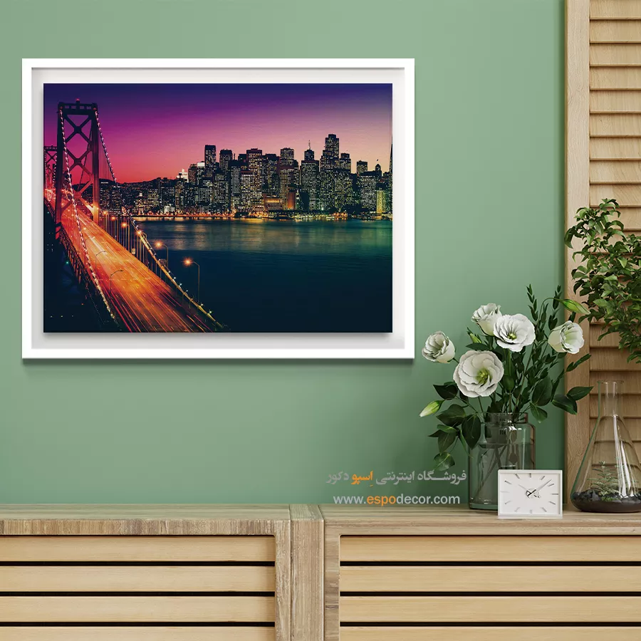 • ادامه طرح اصلی تا کناره‌های بوم: ما در اسپو دکور از این روش استفاده می‌کنیم تا تابلو حالت منسجم و یکپارچه داشته باشد و از نمای کناری نیز جذاب دیده شود.