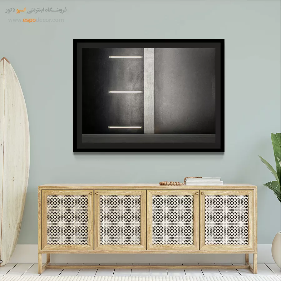 سبک مینیمال: تمرکز بر سادگی است. تابلوهای مینیمال آرت با خطوط ساده، اشکال هندسی و پالت رنگی خنثی (مانند سیاه، سفید، خاکستری یا بژ) ایده‌آل هستند. این تابلوها اغلب بدون قاب یا با کلاف ساده نصب می‌شوند تا تأکید بر مفهوم و فضای خالی باشد.
