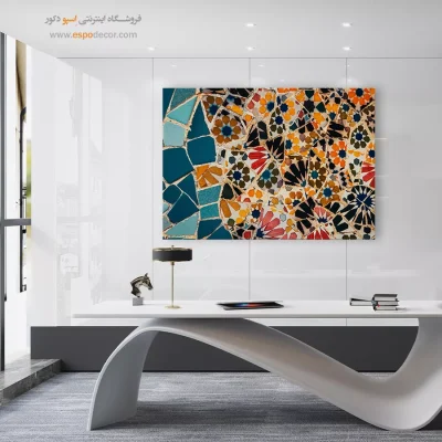 • انتخاب رنگ‌های مکمل یا متضاد: مانند تابلویی با تناژ نارنجی برای دیوار آبی، که تضاد جذاب و پویایی ایجاد می‌کند و تابلو را به نقطه کانونی تبدیل می‌کند.