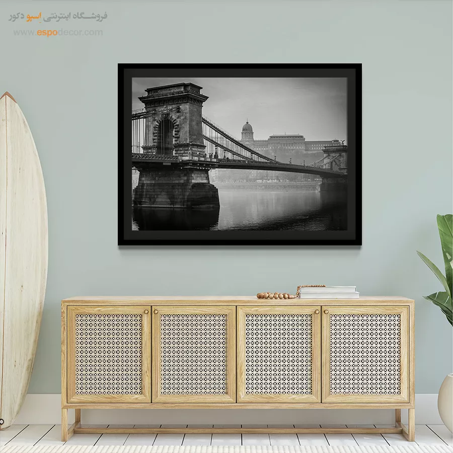 تصویری است که روی کاغذ عکاسی یا متریال صاف چاپ شده و مستقیماً روی یک تخته چوبی صاف (معمولاً MDF یا فیبر) با ضخامت کم پرس میشود و فاقد هرگونه قاب و پوشش شیشهای است. - تابلو قابدار معمولی: