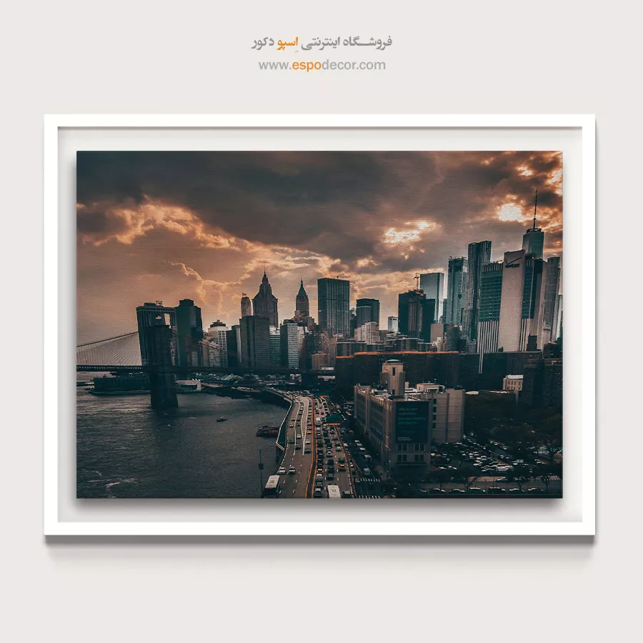 • ادامه طرح اصلی تا کناره‌های بوم: ما در اسپو دکور از این روش استفاده می‌کنیم تا تابلو حالت منسجم و یکپارچه داشته باشد و از نمای کناری نیز جذاب دیده شود.