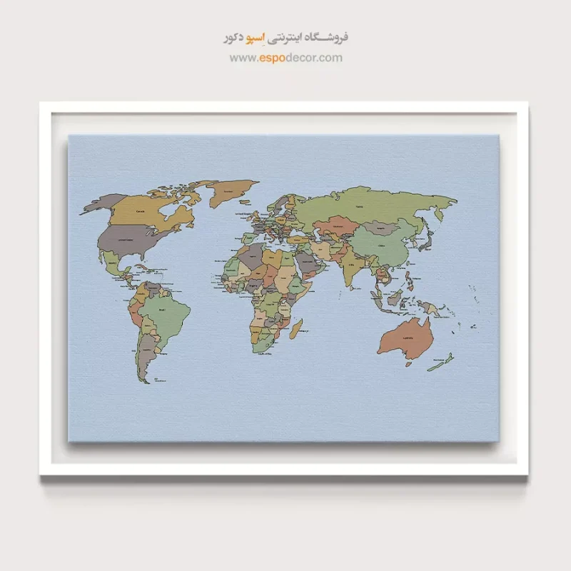 «خرید تابلو نقشه جهان» نسخهای از تابلو نقشه جهان با سبک مدرن است که برای خانه و دفتر کار طراحی شده. این تابلو ترکیبی از زیبایی بصری و کاربرد آموزشی است و حس سفر و کشف را به فضا میآورد.
