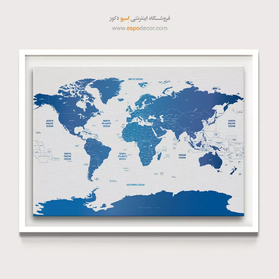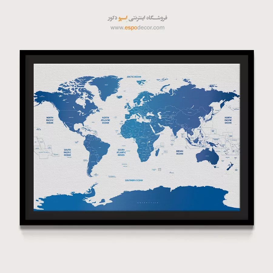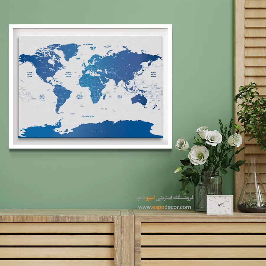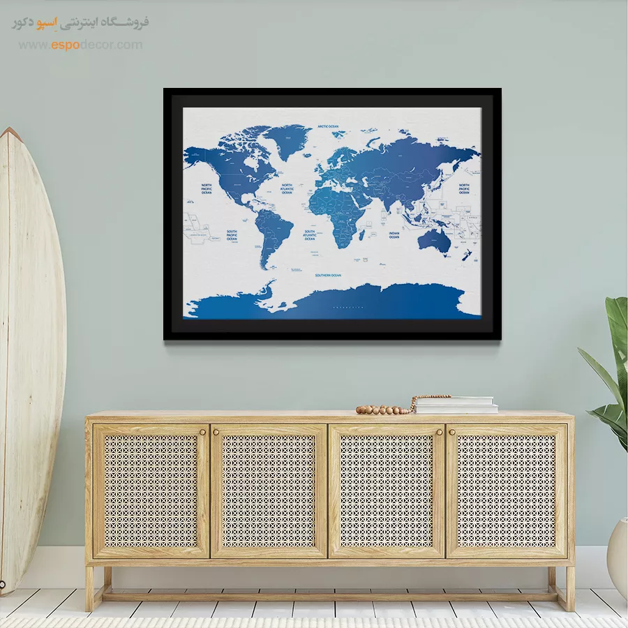 تابلو نقشه جهان مدرن «تابلو نقشه جهان دکوراتیو» با قاب مشکی