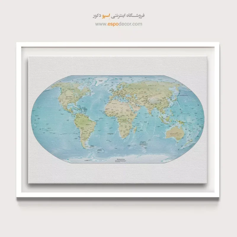 تابلو نقشه جهان روی سفید، طرحی ساده اما جذاب