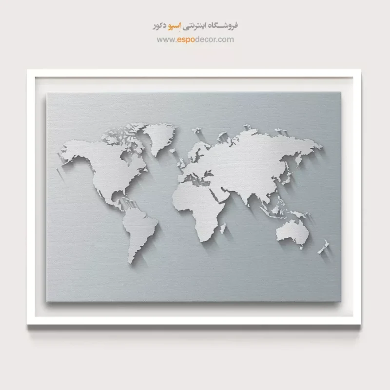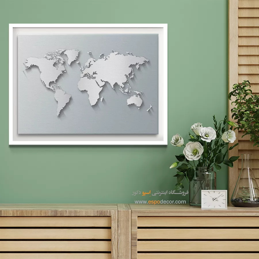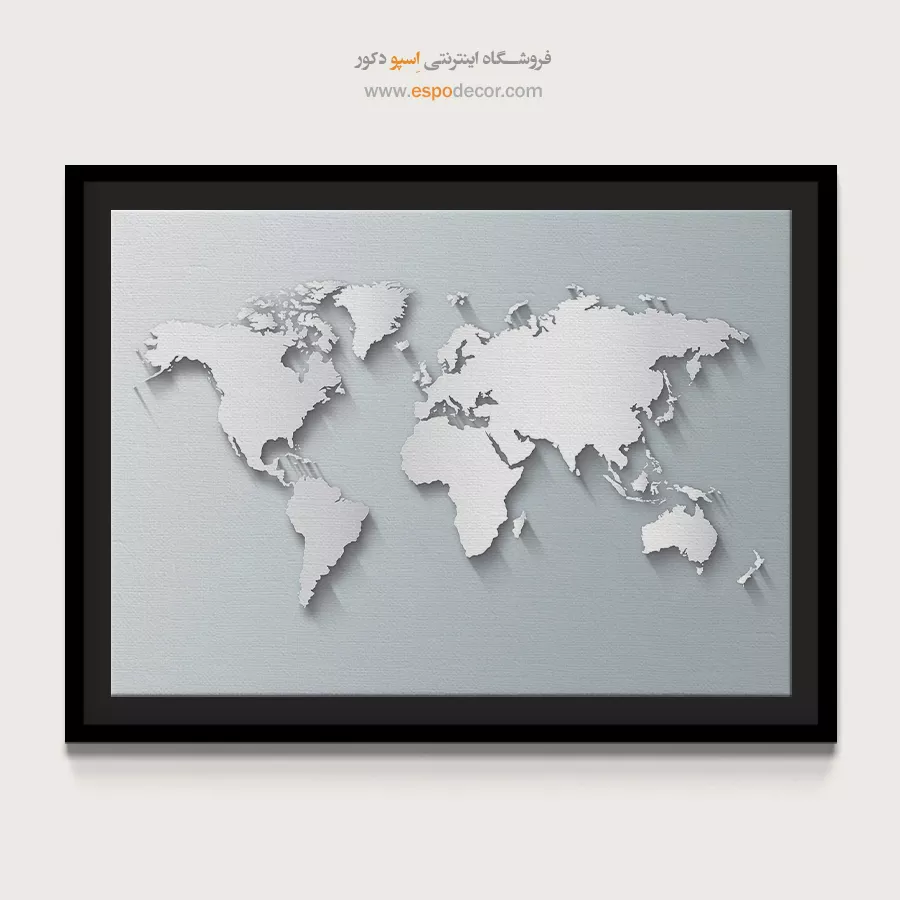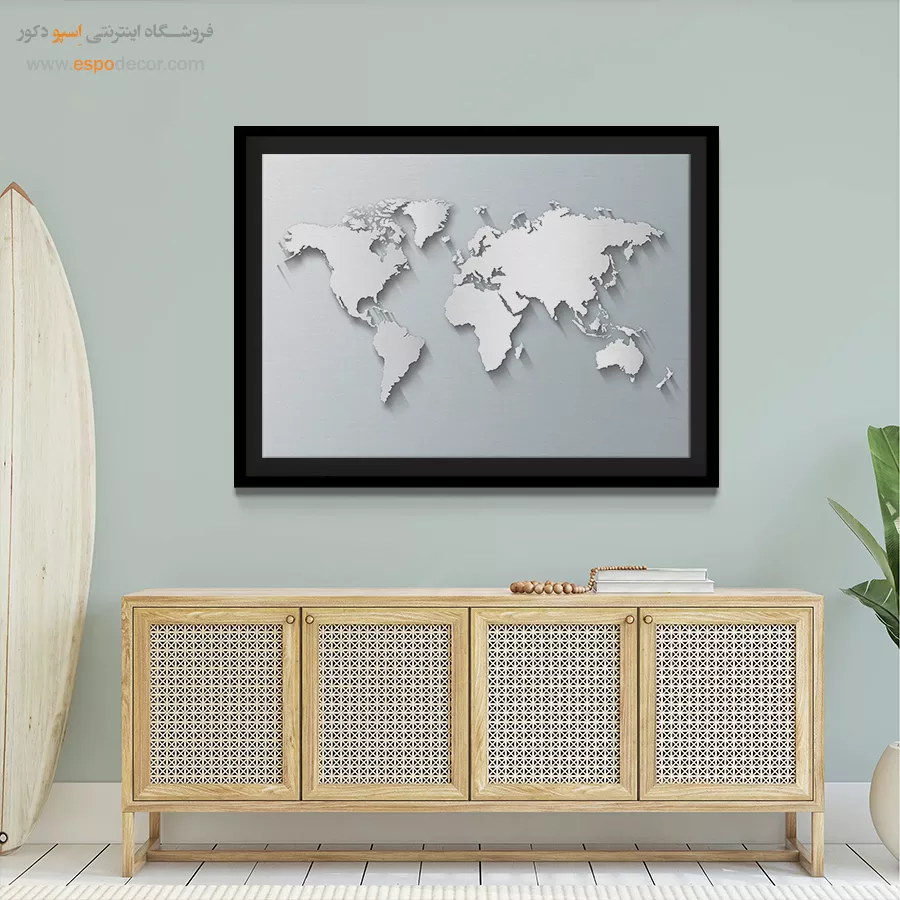 تابلو نقشه جهان مدرن «دکور اتاق خواب با نقشه» با قاب مشکی