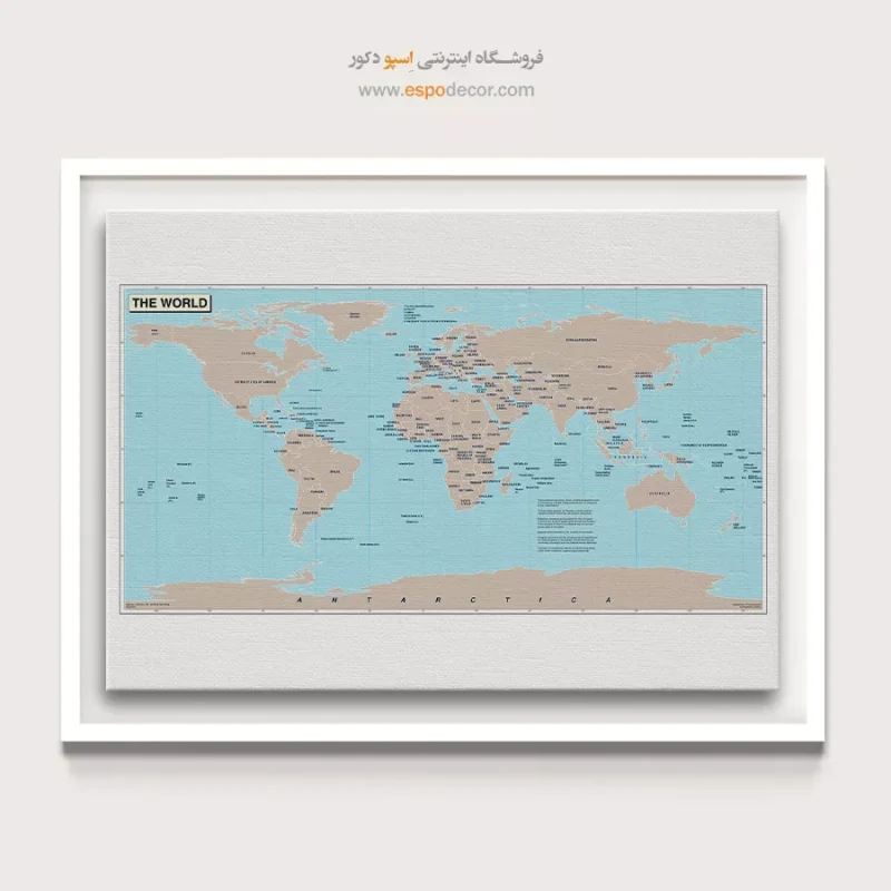 تابلو نقشه جهان مدرن «تابلو نقشه جهان وارداتی» با قاب مشکی
