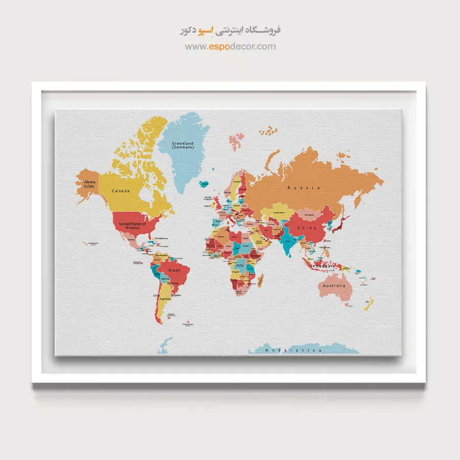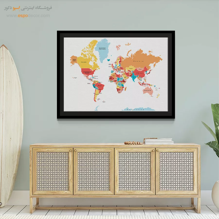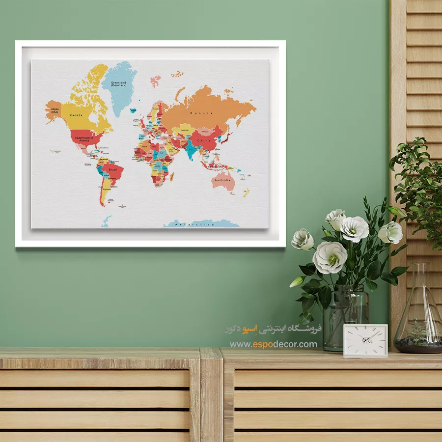 تابلو نقشه جهان مینیمال مدرن، انتخابی ساده و شیک