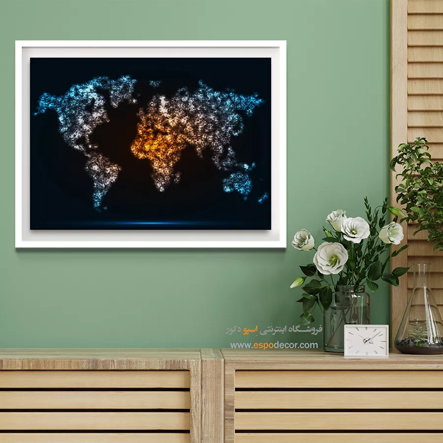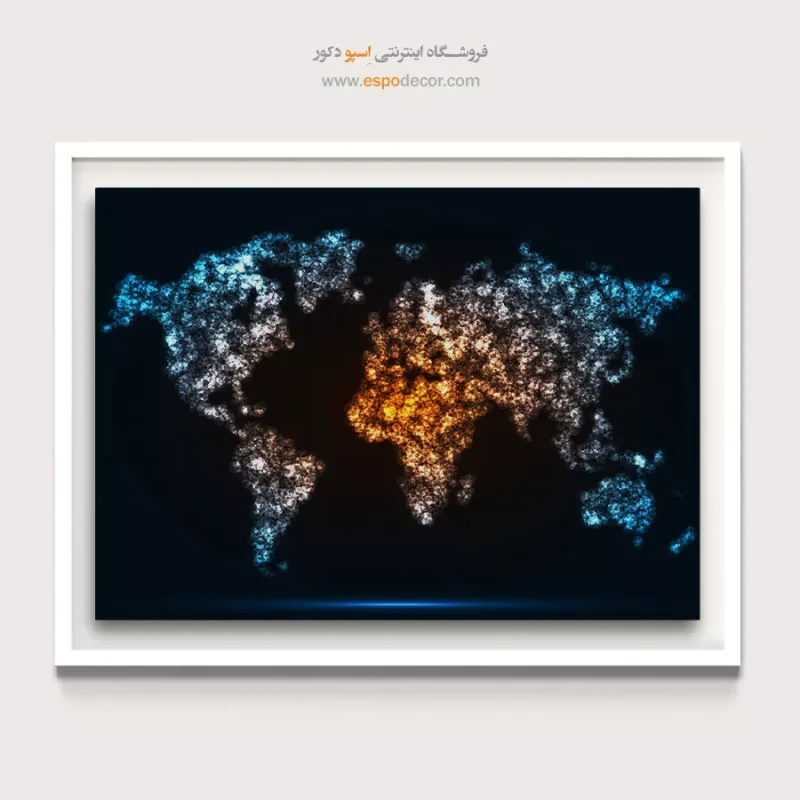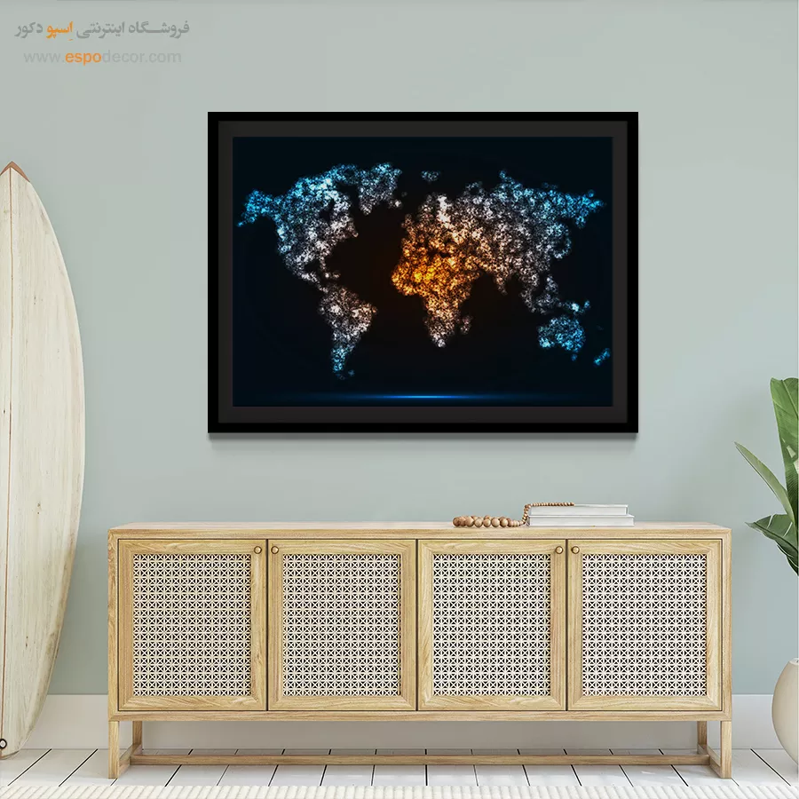 تابلو نقشه جهان مدرن «خرید تابلو نقشه برای هدیه تولد» با قاب مشکی