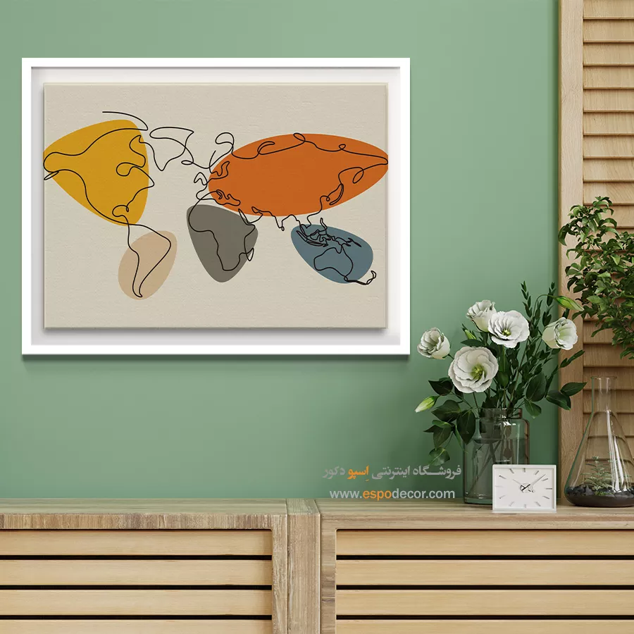 تابلو نقشه جهان رنگی الهامگرفته از طبیعت، آرام و زیبا