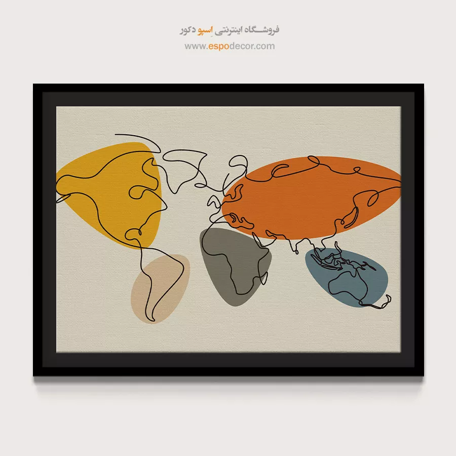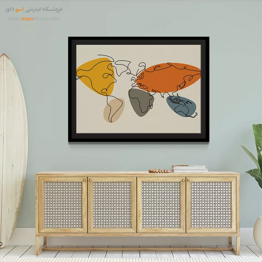تابلو نقشه جهان مینیمال «تابلو نقشه مینیمال» با قاب مشکی