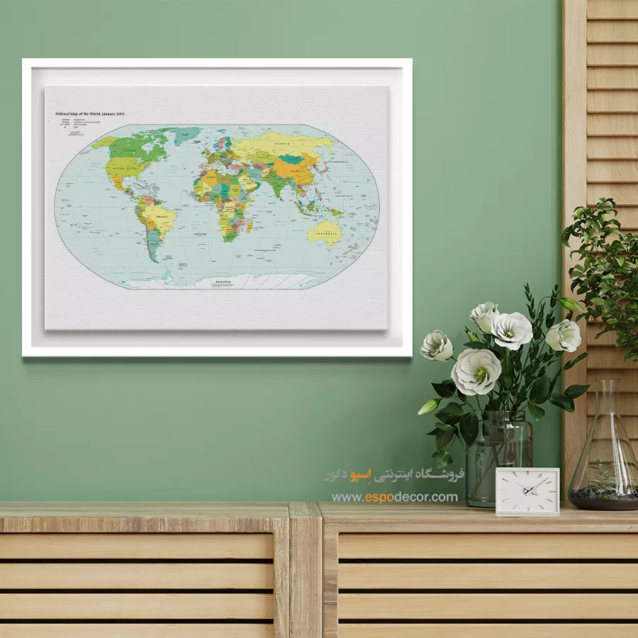 تابلو نقشه جهان رنگی پر انرژی، مناسب اتاق نوجوان