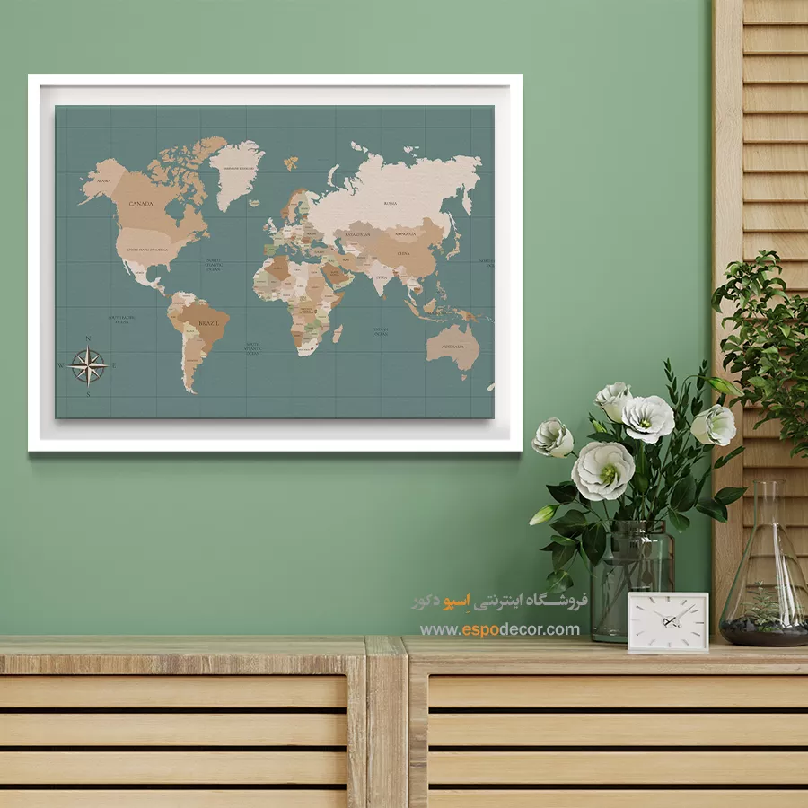 تابلو نقشه جهان مینیمال ساده، مناسب فضاهای کوچک