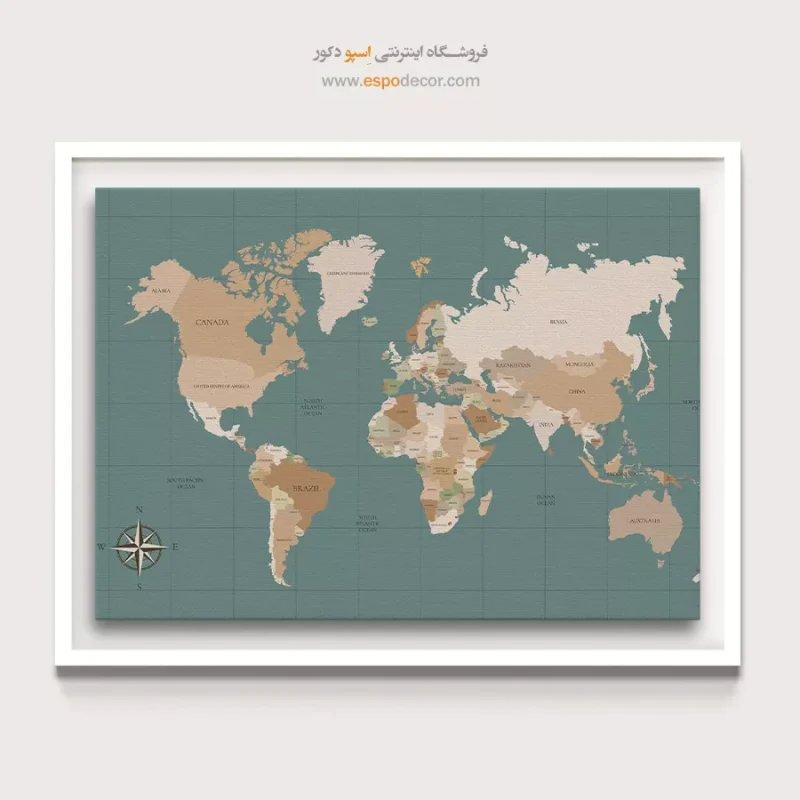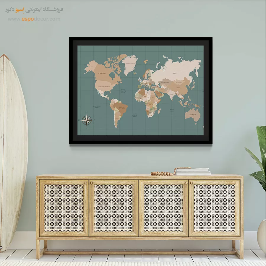 تابلو نقشه جهان مدرن «تابلو اتاق نشیمن» با قاب مشکی