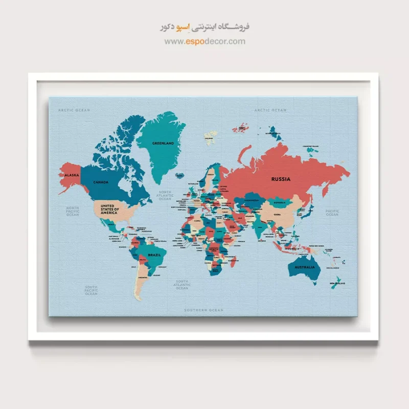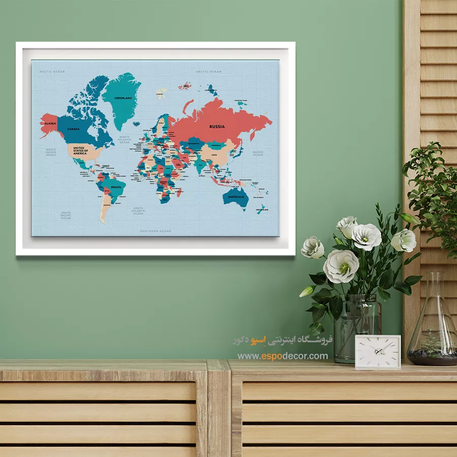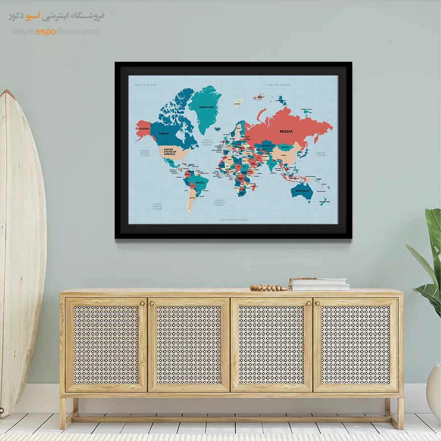 تابلو نقشه جهان مدرن «تابلو مدرن خانه» با قاب مشکی