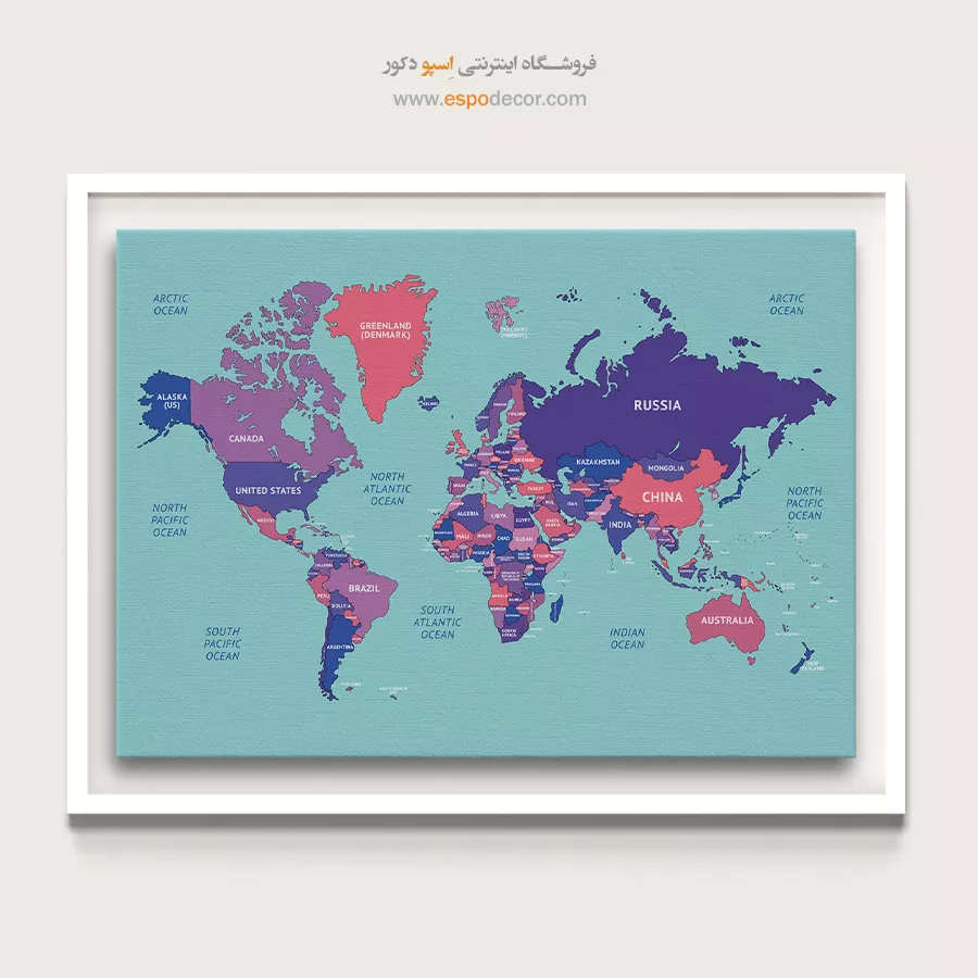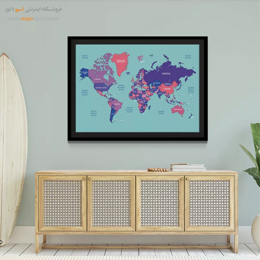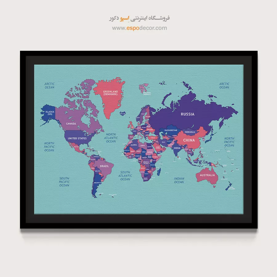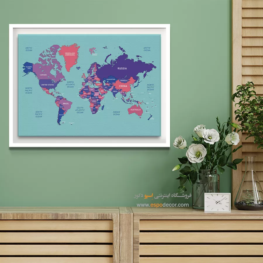 تابلو نقشه جهان الهامگرفته از هنر دیجیتال، خلاقانه و متفاوت