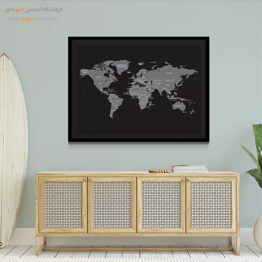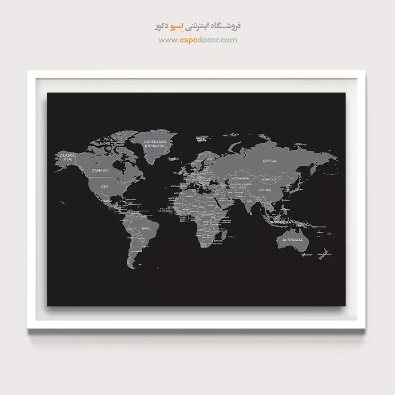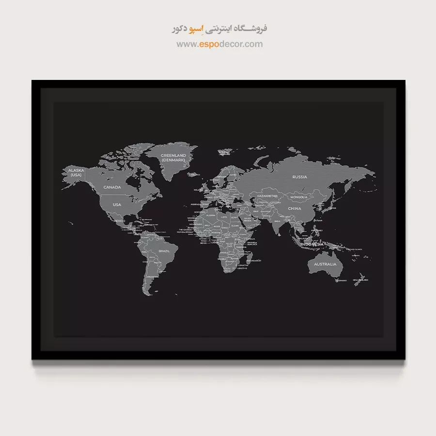 تابلو نقشه جهان مدرن «تابلو نقشه مدرن» با قاب مشکی