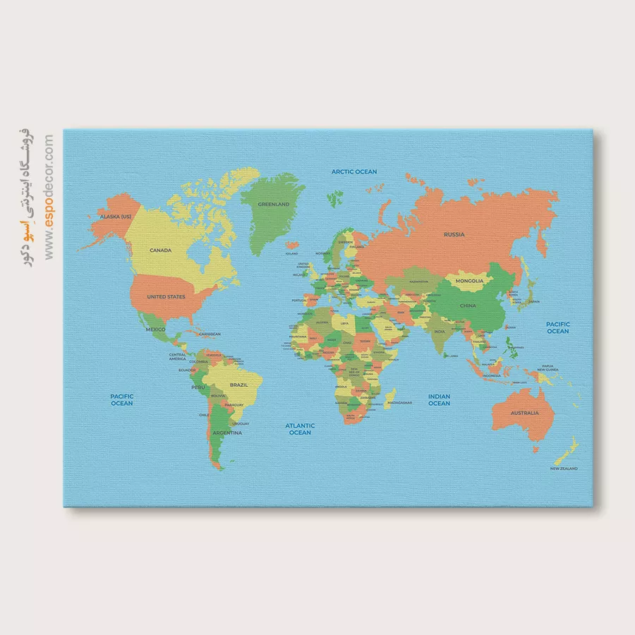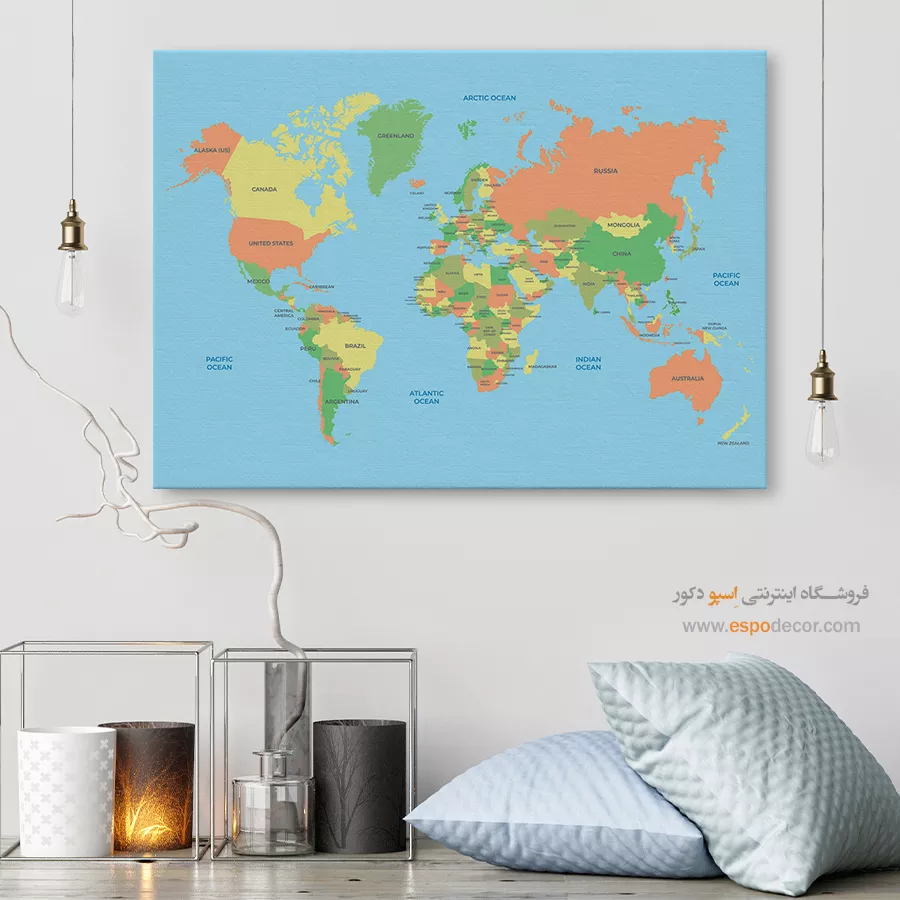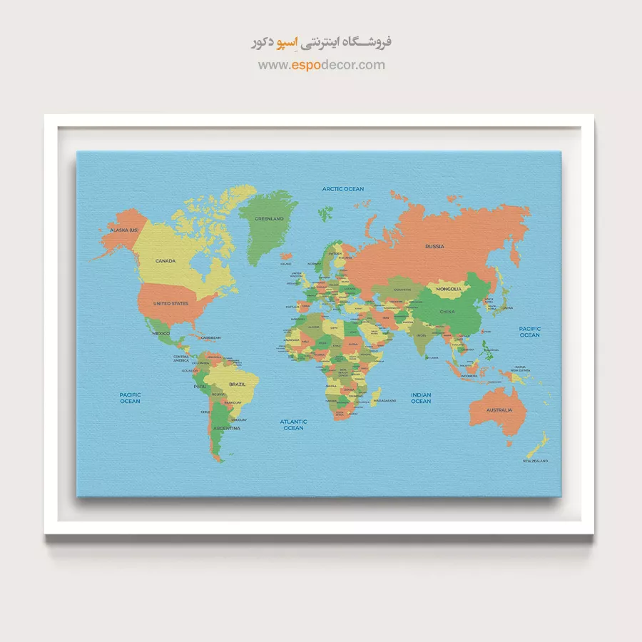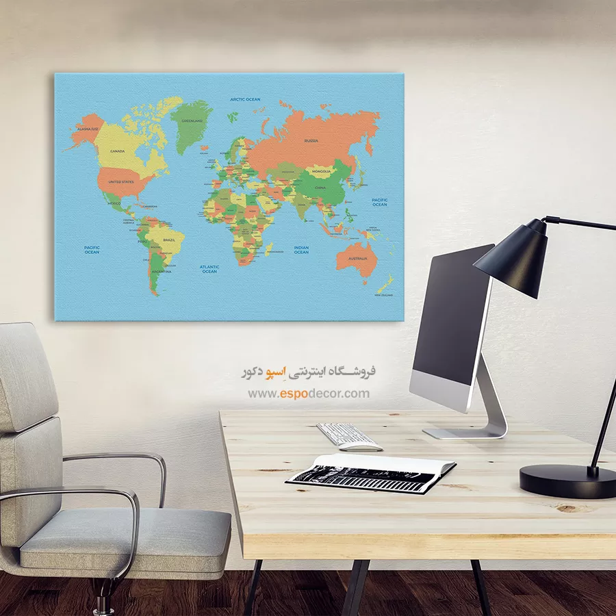 تابلو نقشه جهان رنگی دقیق، مناسب دفاتر سفر