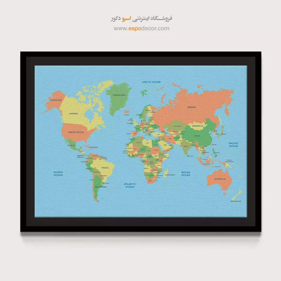 تابلو نقشه جهان مدرن «تابلو نقشه برای دانشجو» با قاب مشکی