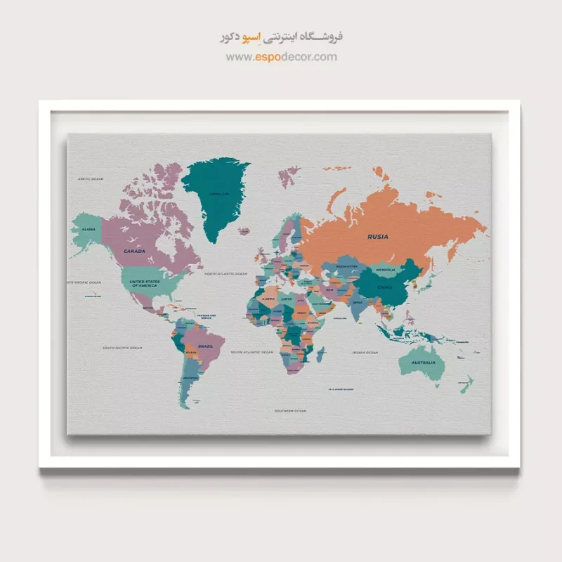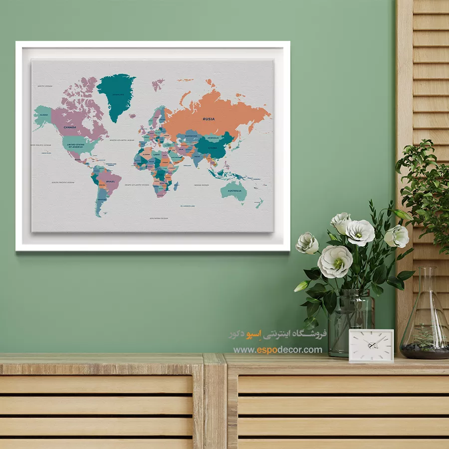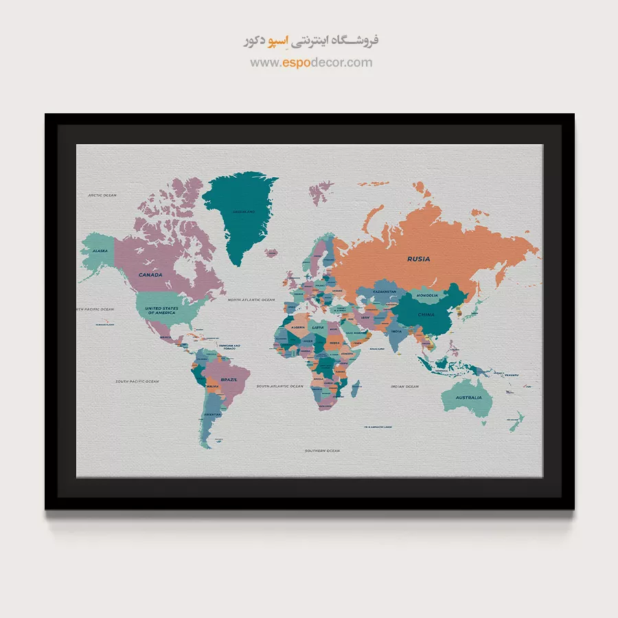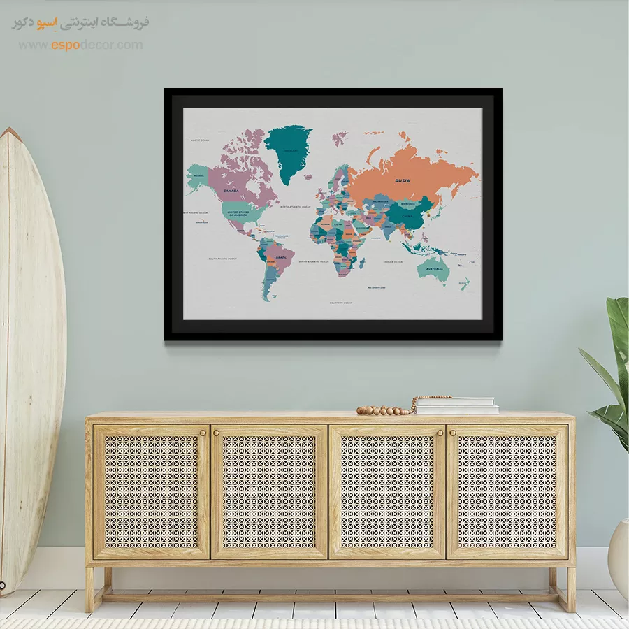 تابلو نقشه جهان مدرن «تابلو نقشه برای مهندس» با قاب مشکی