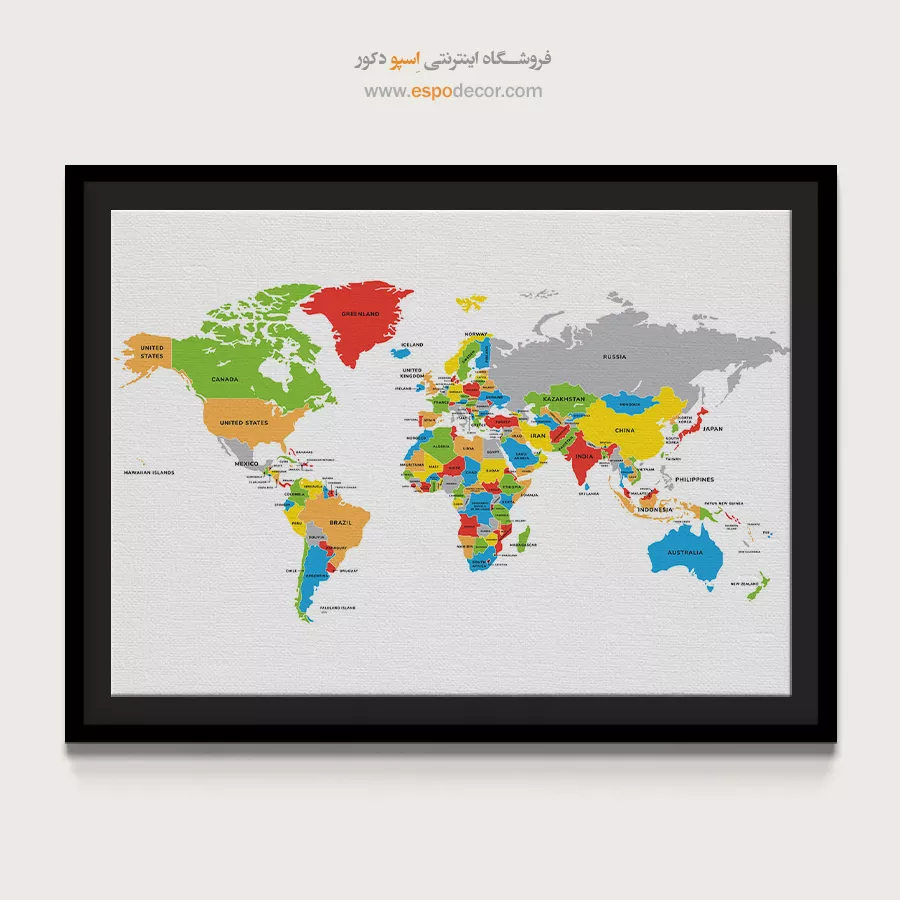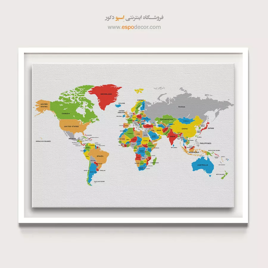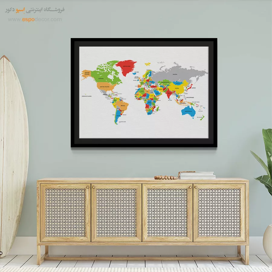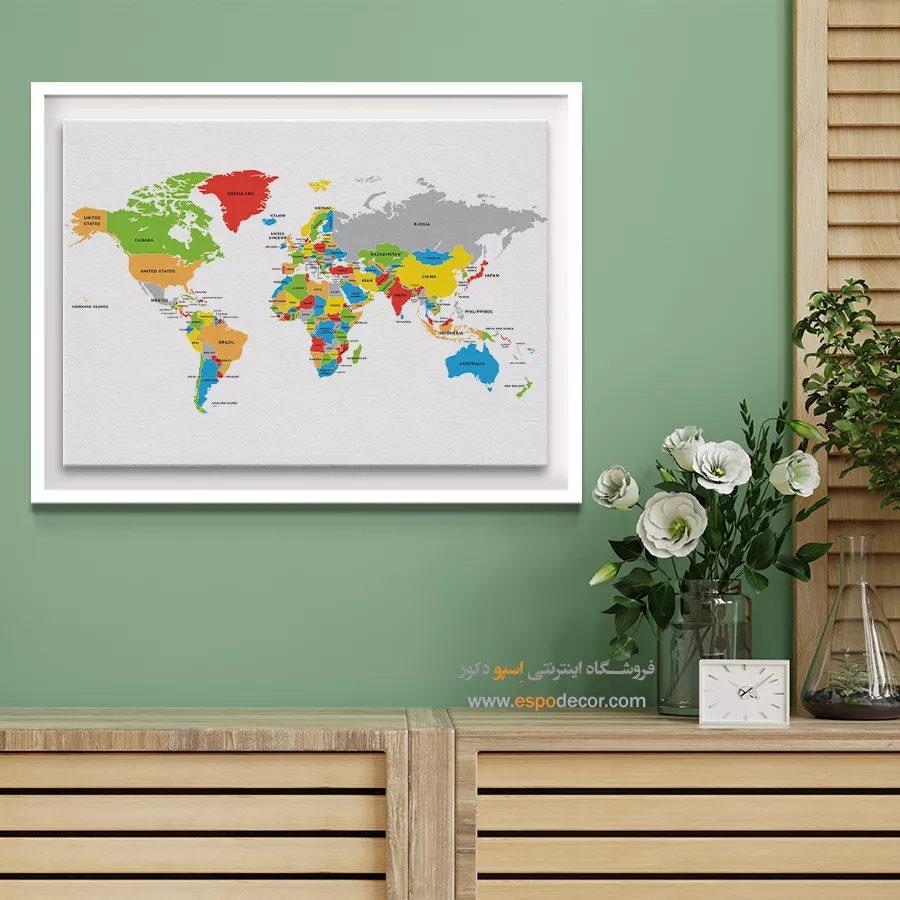 تابلو نقشه جهان مینیمال کلاسیک، ساده و شیک