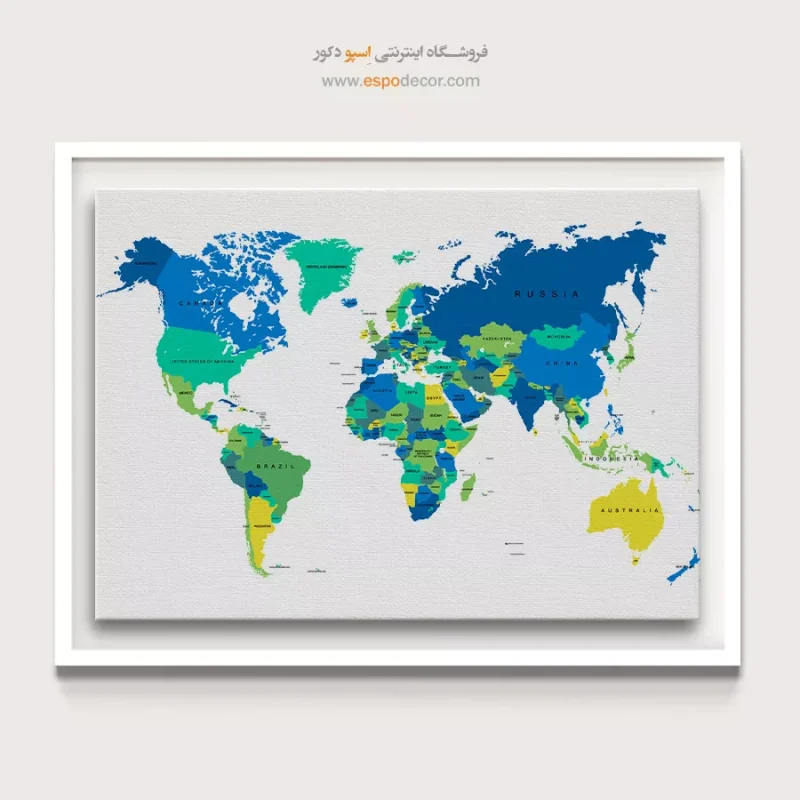 تابلو نقشه جهان با رنگهای شاد، مناسب فضاهای روشن
