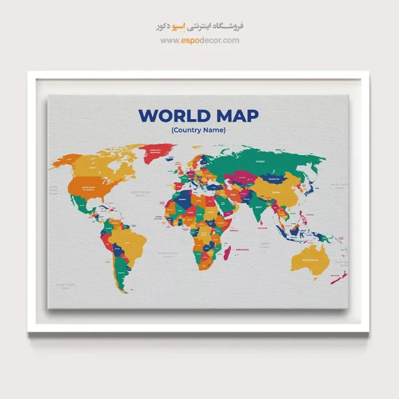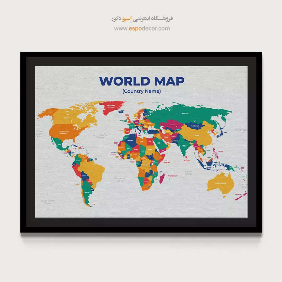 تابلو نقشه جهان الهامگرفته از تایپوگرافی رنگی، مناسب دیوار هنری