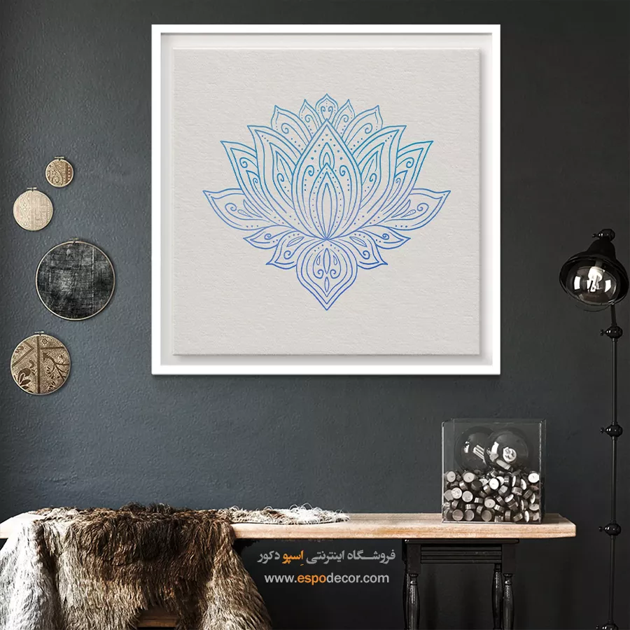 • انتخاب سایه‌های مختلف از رنگ دیوار: مانند تابلو آبی تیره روی دیوار آبی روشن، که حس آرامش و یکپارچگی در فضا ایجاد می‌کند.